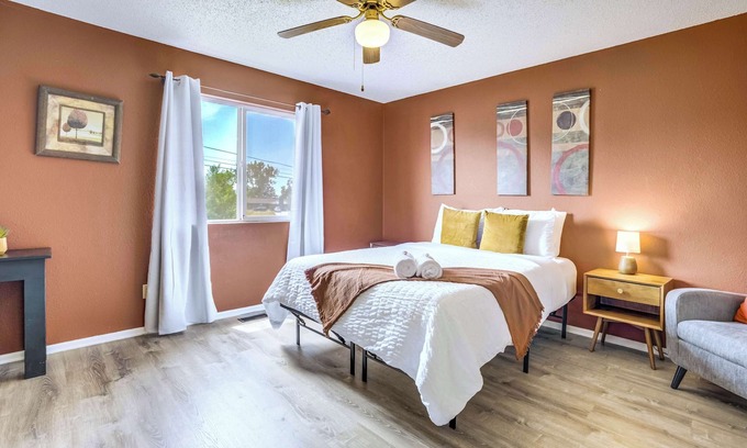 Designed with comfort and functionality in mind, this spacious multi-level home offers a flexible layout perfect for families, friend groups, and extended stays. With two living areas, four private bedrooms, and a fully fenced backyard, it’s a relaxing home base just 10 minutes from the airport.