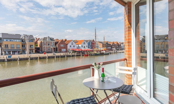 With a view of the Husum inland harbor, this stylishly furnished vacation apartment offers | Apartment in Husum