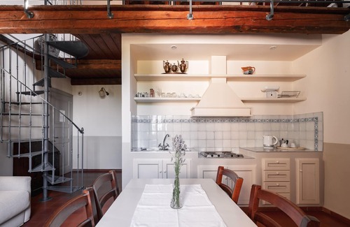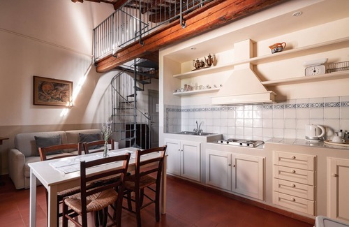 The Apollo apartment is located on the property Pignocco Country House. The studio is located on the first floor of the farmhouse and has a living room with sofa bed, TV, kitchen and private bathroom with shower. The master bedroom with iron bed batuto old and the closet are located in the loft, which can be accessed via a spiral staircase. The loft is located in an attic with hollow tiles exposed and romatico and suggestive.