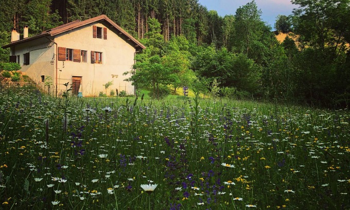 The house is the only dwelling at the bottom of a little valley. It is a peaceful and solitary place. It is completely surrounded by nature. The quiet woods and peaceful hum of the running river are the only sounds. Mount San Mauro, Grave, and Tre Pietre provide a stunning scenic background.