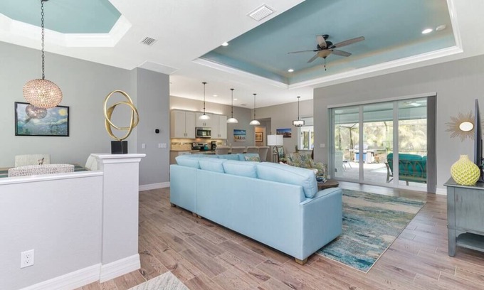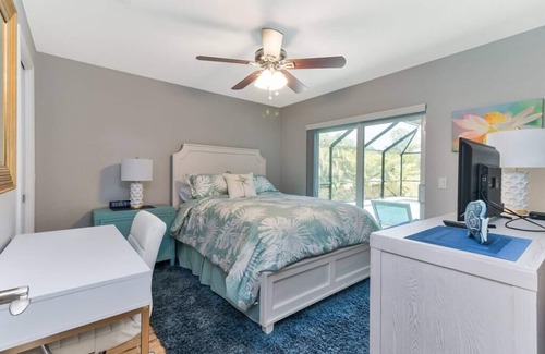 Whether you are looking for a staycation or an extended getaway, we can accommodate the request. The property has been curated for a peaceful stay with all the details perfectly planned. As you approach your meticulously maintained destination, you will be warmly welcomed by waving neighbors walking, jogging, and biking about. This active community is surrounded by 4 golf courses, with public links serving both the novice and the professional alike. Remember to pack the clubs! The nicely equipped kitchen serves as the hub of the space where all will gather around the breakfast bar to chat and have a casual bite. For the formal occasions, the dining room table suits 6 guests. The chef in the group will appreciate that everything you need is right at hand. Nothing has been missed. The view to the pool is quite extraordinary. Pocket sliders and an aquarium window create the perfect visual. A sprawling covered lanai with a salt water pool and the convenience of electric heat as the evenings cool. For those who prefer sun and lots of it, there is plenty of space poolside to soak in the rays. Spacious seating under cover as well. Fire up the top-of-the-line Weber propane grill, inflate the rafts and let the relaxation begin. Privacy is created with nature’s own fence line. Home sits on a freshwater canal where nature abounds. The Sandhill Cranes are frequent guests. As the day comes to an end, a peaceful night’s rest is sure to be had in the comfortable accommodations. The master suite is split from the guest rooms and features king sized bedding. Both guest bedrooms feature queen sized sets. Unique dining and shopping experiences of Cape Haze abound including the extraordinary restaurants, shops, and beaches of Boca Grande. Bikes provided if you want to keep the exploration closer to home. This is a place where lasting memories are created. Pool heat is available at $15 per night as the evenings cool. The home has a ring doorbell at entry and a camera by the garage entrance.