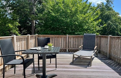 Prepare a home-cooked meal in the kitchen, complete with an oven, a stovetop, and a refrigerator, as well as a coffee maker and a microwave. Other amenities at this 1-bedroom, 1.5-bathroom rental include heating and a dining table.