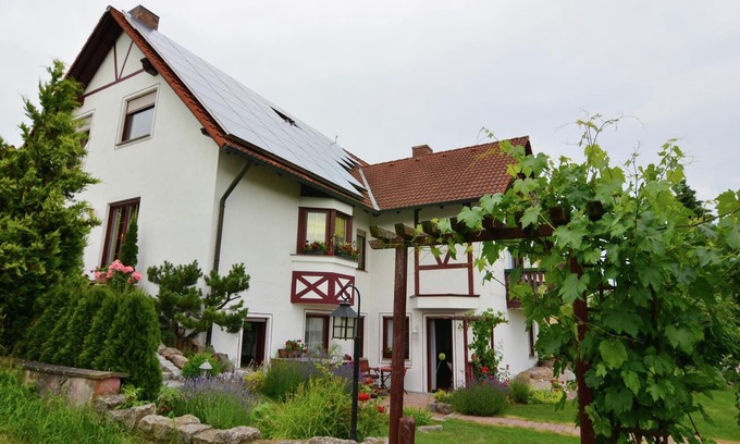 "A bed of roses"—a phrase that perfectly captures your stay at this 5-star holiday apartment located at the foot of the Haßberge Mountains in Zeil am Main. Tucked in a quiet, sunny, south-facing spot directly along the Main Valley Cycle Path, this beautifully designed apartment combines traditional charm, modern comfort, and unique decor for a stay filled with well-being, relaxation, and enjoyment.