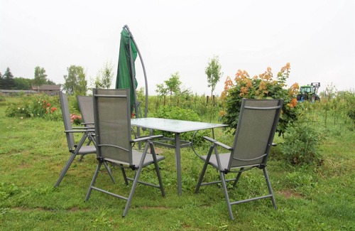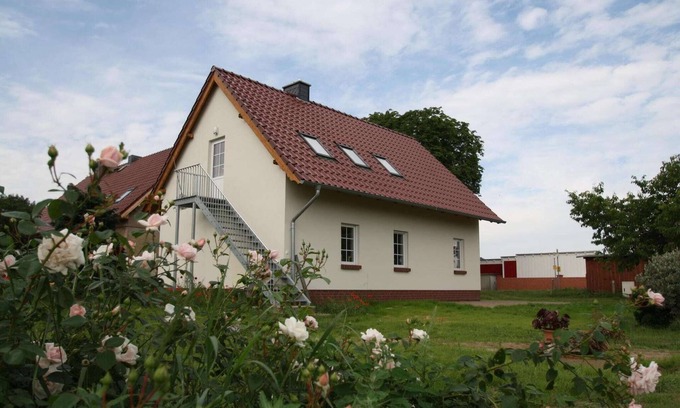 Tastefully furnished holiday apartment on the top floor on a 5,000 square meter garden and natural property in Rogeez, a district of Fünfseen. Well over 1000 old trees with over 200 old types of fruit are distributed on the property with a small number of animals, which you share with the landlord. There is a fruit distillery on the ground floor of the house, where you are welcome to take part in a demonstration distilling if you are interested. The nearby Kogeler See with its natural bathing area offers you a welcome refreshment at any time, and day trips to the pretty island town of Malchow or to Röbel are recommended for excursions in the surrounding area , on the east bank of the Plauer See and south of Malchow. Within the municipal area are the Kogeler See, the Hofsee and part of the Petersdorfer See. This region is just as much a paradise for anglers and water sports enthusiasts as it is for nature-loving active vacationers, as there are extensive forest areas right on the doorstep. Highlights include: All consumption-based energy costs, laundry package and final cleaning WLAN activities nearby: the community of Fünfseen, Plau am See and the island town Malchow form an exciting triangle for your excursions and activities. Go on bike tours, hikes or fishing days, boat trips on the Plauer See's passenger ships or a visit to Malchow, because there is so much to discover and experience here: the GDR Museum in the Film Palace building, the "Kiek in un wunner di " where you can see and touch curiosities and rarities or the pretty flower garden Malchow - a very special feast for the eyes.