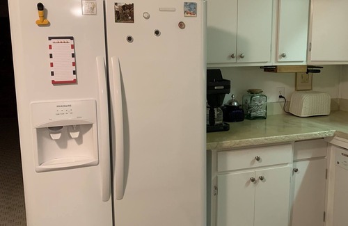 The two bedrooms have great queen beds. One bathroom serves as a powder room for the "lake room," as well as the bathroom for the primary bedroom. The second bedroom has a bathroom across the hall. There is also a full bed in the den, and there is a laundry room. There is a sleeper sofa, best for kids as adults won't find it very comfortable. There is a fully equipped kitchen for cooking and baking, including a Kitchen Aid, toaster, coffee maker, Crock Pot, cookie sheet pans, and all the cooking utensils you'll need! Nearby caretakers can provide firewood or, in summer, a boat ride around the lake for a small fee. There are games and books, a TV and DVD player, and minimal cable/internet. Internet can be sketchy in inclement weather or if many are all using at once.