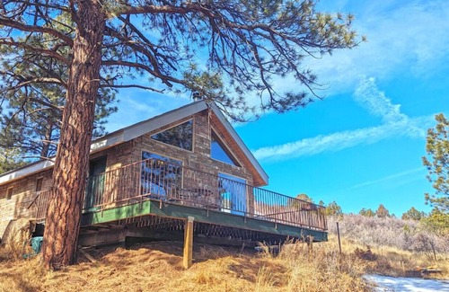 Nestled within the trees of the Manti-La Sal National Forest, this charming one bedroom-one bathroom private cabin boasts a full kitchen/dining area along with a deck that overlooks a grove of large pines. This cabin comes with a bunkhouse next door that sleeps up to 5 people. All cabins are solar powered and completely off the grid. An excellent choice for eco-friendly travel.