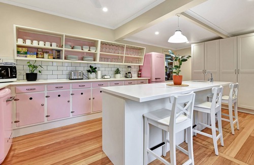 - Modern Amenities: Enjoy the unique Pink Panther kitchen complete with Smeg appliances, an island benchtop, and a pantry stocked with essentials – perfect for group meals and celebrations.