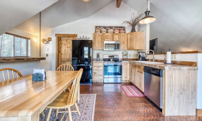 This 2 bed 2 bath cabin sits on the East Fork of the Bitterroot River and has the scenic living you want in a Montana cabin with the modern luxuries you want to make it feel like a vacation. The upstairs is very comfortable with an open floor plan, well-stocked kitchen with newer appliances, great mountain views from the outside deck, and a wood burning stoves for those cool mountain evenings. There is one bedroom upstairs and one bedroom downstairs, both bedrooms feature a queen bed and their own full bathroom. Both bathrooms have a shower/tub combo.
