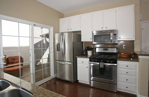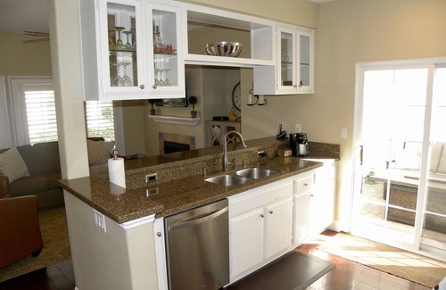 At the cottage there will be no one above you or below you and no shared walls. This is a detached house with it's own, direct access garage. The home is professionally decorated, highly maintained and fully equipped for your stay. You will love the upscale touches like hard wood floors throughout and new marble floors in the bathrooms. The well stocked, upgraded kitchen features stainless steel appliances and new counter tops. The kitchen has direct access to a private patio with sitting area and gas BBQ grill. The perfect place to relax and enjoy the beautiful southern california weather! The master suite features a California king bed, big flat panel Smart TV and a private bathroom. The second bedroom has a comfy Queen size bed and flat panel tv. The comfortable living room has a 55" Smart TV, fireplace and a Queen size sofa sleeper. The newly added front patio is very popular with our guests for morning coffee or evening drinks!