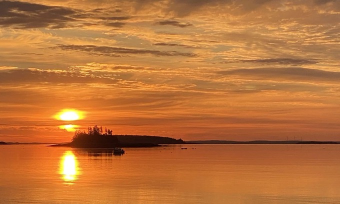 Wake as the sun rises over the islands on the horizon, three miles away, across the Mussel Ridge Channel. Fall asleep to the sounds of water lapping against the beach.