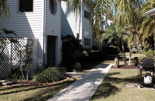 The apartment is on the lower level close to the Olympic size pool and Club House. If you wish to bring your boat, docks are available on a first come basis on the canal right by the parking lot and apartment. Tennis players have two courts available and golfers have many courses to choose from in the area. But if all you wish to do is watch the sunset while you fish, a magnificent pier is a short 5 minute walk away from your front door.