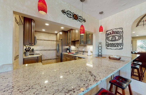 The interior decor of this home will make you feel right at home with its sunny ambience, providing the perfect setup for a trip you won't forget! In the cozy living area, relax on the comfortable furnishings and watch your favorite shows on the smart TV. Here, you can light up the fireplace to warm up, providing additional coziness. When you're ready for a bite to eat, head to the well-equipped kitchen with bar seating to whip yourself up a delectable dinner. A gas grill awaits, allowing you to add charred favorites to the menu. At the day's end, unwind and use the shared washer/dryer to refresh for the adventures ahead.