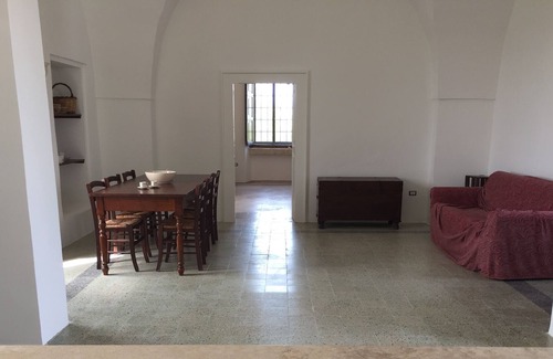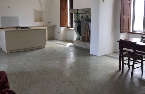 There is another large scale planned and gently renovated flat, 95qm on the first floor with well equipped kitchen/diningroom with fireplace and terrace, two sleeping-rooms with separate entrances and bathroom. High cross-ceilings and vaults. Please have a look under the following advertisement "Estate (Masseria) - Flat with 2 sleeping-rooms". You'll find it also on this platform.