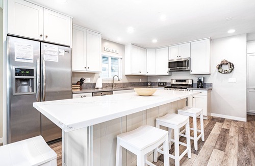 Now booking for Summer dates only, so you'll have to act quickly! Our 44th Street, two-story vacation home, with a total of 5 bedrooms and 4 bathrooms, is ready to provide great lifelong memories for your family's next summer trip to Newport Beach! And check out the new transformation of the main downstairs kitchen! It's a beauty!