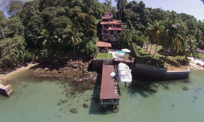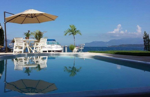 Waterfront House in Angra. Excellent house with capacity to accommodate 14 people. We have 5 bedrooms, recreation area with pool, barbecue, sauna, deck and whirlpool. Cable TV Motorboat (apart). Amazing view in every room of the house! Angra - RJ - Brazil.