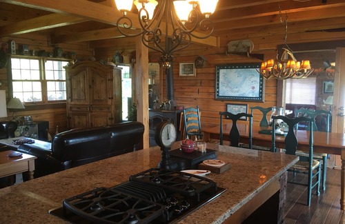 Wonderful 2000 sq. ft., 1.5 story oak, log home overlooking (& direct access to) the Mississippi River. 3 bedroom/2 bath. (3rd bedroom is loft). Home sleeps 7. New kitchen with granite and stainless appliances! Nicely furnished!
