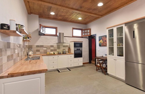 Finca La Casona de Abajo, a rustic and comfortable farm estate, offers an idyllic holiday rental retreat on the outskirts of Arucas, Spain. Surrounded by a fenced garden with a lush lawn, this property boasts a seasonal angular swimming pool (7 x 3 m, depth 140 - 140 cm) available year-round. With Internet Wifi access, you can enjoy connectivity while relishing the tranquil ambiance.