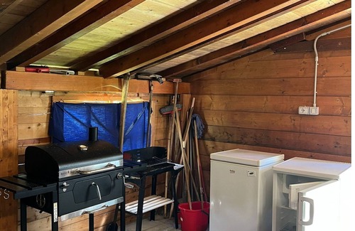 Garden (7000 m2): swimming pool (private, length: 12m, width: 6m, max. depth: 1.7m, min. depth: 1.4m, outdoor), barbecue, al fresco dining, three dining tables (people: 18), garden furniture, sunbed, enclosed property.