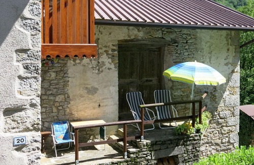 2-room house 42 m2 on 3 levels. Renovated, practical and cosy furnishings: kitchen-/living room (Gas stove, 4 gas rings, toaster, microwave) with radio and wood-burning stove. Exit to the terrace. On the lower ground floor: with bath/bidet/WC. Exit to the garden. Upper floor: 1 open double bedroom. Exit to the balcony. Heating. Small balcony terrace roofed. Terrace furniture, deck chairs (2). Beautiful view of the countryside. Facilities: washing machine. Please note: non-smoking house. Private entrance. No mandatory extra charges to be paid on-site. Bedlinen, towels, final cleaning and all energy costs are included.
