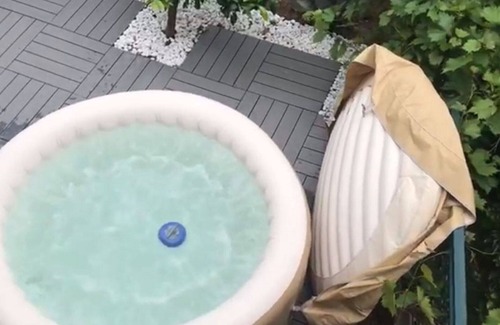 The property boasts a private, fenced 200 m2 terraced garden with a lawn and trees. It includes an above-ground round swimming pool (2 m diameter, depth 60 - 70 cm) that is available seasonally from April 1st to November 1st. A 100 m long narrow motor access leads to the grounds, and a stepped path takes you to the house.