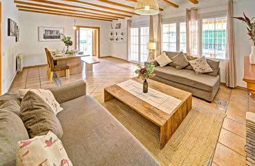 "La Sal", 4-room house 147 m2. Object suitable for 6 adults. Practical and comfortable furnishings: living/dining room with satellite TV, digital TV, air conditioning and forced-air heating. Exit to the patio, to the swimming pool. 1 room with 1 french bed (180 cm, length 190 cm), shower/WC. 2 rooms, each room with 2 beds (90 cm, length 190 cm). Kitchen (oven, dishwasher, 3 induction hot plates, toaster, kettle, microwave, freezer, electric coffee machine). Exit to the patio, to the swimming pool. Bath/WC. Terrace. Terrace furniture, barbecue, deck chairs (4). Facilities: washing machine, iron, hair dryer. Internet (WiFi, free). Reserved parking (2 cars) at the house. Suitable for families. 1 pet/ dog allowed. AT-464481-A