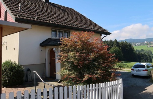 Wittenbach 5 km from St.Gallen: Child friendly, cosy single-family house "Casa al Bosco", 640 m a.s.l., built in 1968, renovated in 2019, surrounded by meadows. On the outskirts, 2 km from the centre of Wittenbach, in a quiet, sunny position, 8 km from the lake, in a cul-de-sac, in the countryside. Private: property (fenced), garden. Children's playground (swing). In the house: storage room for bicycles, central heating system, washing machine, tumble dryer (extra). Motor access to the house. Parking (for 3 cars) at the house. Supermarket 2 km, restaurant 1.2 km, bus stop 2 km, railway station "Wittenbach" 2 km, 8 km. Golf course (18 hole) 12 km, ski lift, children's ski school 550 m. Well-known lakes can easily be reached: Bodensee 8 km. Hiking paths: Appenzellerland 10 km. Please note: car recommended.