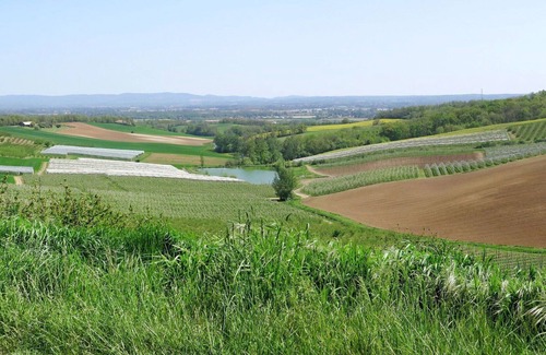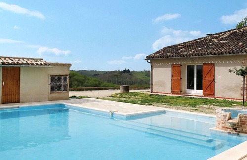 Beautiful, comfortable country house "Touzy". 6 km from the centre of L'Honor-de-Cos, 14 km from the centre of Montauban, 45 km from the centre of Cahors, on a slope, in the countryside. Private: natural state property 1'000 m2, swimming pool (9 x 5 m, depth 1 - depth 150 cm, seasonal availability: 01.Jan. - 31.Dec.) with internal staircase and alarm system. WC in the pool area, outdoor shower, terrace (60 m2), garden furniture. 400 m long bumpy, steep motor access. Parking at the house on the premises.