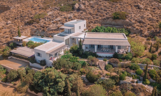 Best-rates for the Mikri Vigla villa starts from $934 per night with includes Child Friendly, Internet, Laundry, Fireplace/Heating, Air Conditioner, Parking, View, Ocean View, Security/Safety, Kitchen, TV, Wellness Facilities, Guest Services, Bedding/Linens, Pool, Balcony/Terrace, Sports/Activities, Barbecue/Outdoor Cooking, Private Pool, Oceanfront, Entertainment with all other amenities. Perfect for Weddings is committed to ensuring every guest experiences a comfortable and extraordinary stay, whether planning a romantic getaway, a honeymoon, a pet-friendly stay, or celebrating with the entire wedding party.