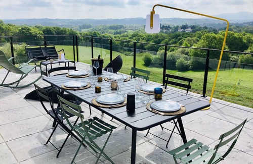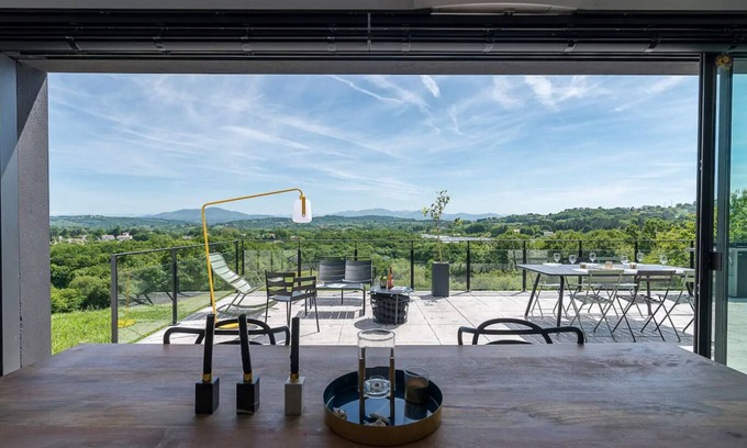 Between sea and mountains, near the banks of the Adour River, Villa Mendia is a haven of modernity and tranquility. The spacious interiors are ideal for vacations with family or friends.
