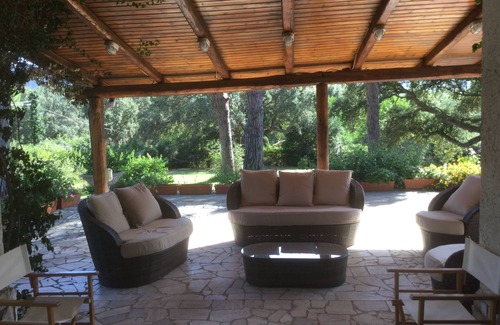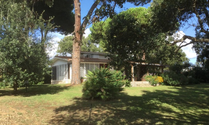 In the woods of Circeo, 200 mt. from the ruins of the villa of the emperor Domitian, in a private park of over half a hectare with pine and oak trees, and view of the bordering Lake of Paola, separated from the sea by a long strip of sand dunes. In the main building, on the ground floor two double bedrooms, each with bathroom, complete kitchen and living room, large dining room and elegant living room with large fireplace; on the first floor the master bedroom with en suite bathroom and, under the roof, a large attic used as a storage area. The vast covered patio, complete with garden furniture, opens onto the magnificent park with swimming pool and breathtaking view of Mount Circeo. In the nearby annex, two other double rooms - an exceptionally large one - and a bathroom. Independent heating, air conditioning in the master bedroom, alarm system. The parking area can accommodate up to five cars. The marvelous Torre Paola beach is 5 min. by car and 25 on foot. Two tennis clubs and an equestrian club 5 minutes by bike, a ping pong table is available in the house. All essential services are very close. The area is full of tourist attractions: the picturesque village of San Felice Circeo, the wonderful islands of Ponza, Palmarola and Ventotene just 17 nautical miles, Terracina and the famous medieval abbey of Fossanuova, and a little further away Ninfa, one of the most beautiful of Italy.
