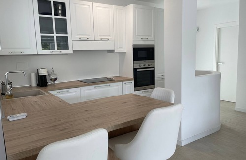 A BBQ grill and air conditioning are featured at this 5-bedroom, 3-bathroom rental. Bathroom amenities include a hair dryer and a bidet. The kitchen is equipped with an oven, a stovetop, and a dishwasher, as well as a coffee maker, an ice maker, and a microwave. Other amenities include bed sheets and a dining table.