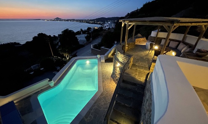 - White Stone Art Villa, luxury seaside ORKOS Plaka, sublime panorama