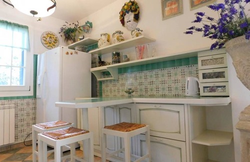 The three-bedroom villa is fully equipped to host up to 6 people. It has 2 specious bedrooms with double bed, 1 bedroom with 2 separate beds, 2 comfortable bathrooms with shower, washing machine, a beautiful well equipped kitchen with peninsula and a living room with TV, sofa, large windows to ensure a magnificent view of the pool. Outside you find a porch with sunbeds and outdoor furniture, a swimming pool, barbecue, large private garden of approximately 800 meters and 2 parking lots.