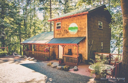 Your own private retreat on ten wooded acres with 500 ft of warm summer swimming waterfront. One of a kind vacation rental with breathtaking view of the Olympic Mountains.