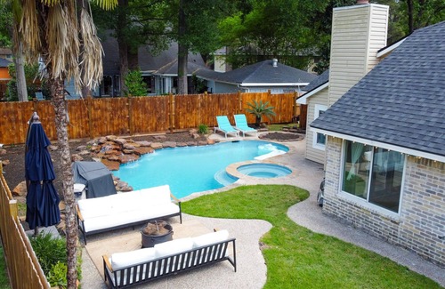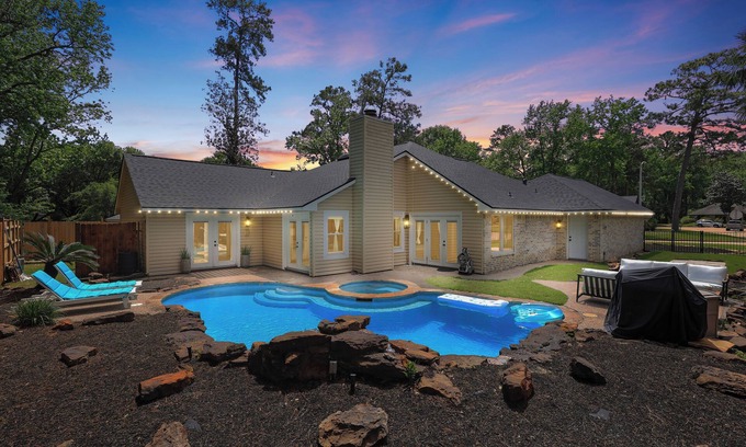 Woodbridge Bungalow - Near IAH 4BD 2BTH Spa is located in Kingwood. Woodbridge Bungalow - Near IAH 4BD 2BTH Spa provides accommodation, featuring Bedding/Linens, Fireplace/Heating, Barbecue/Outdoor Cooking, among other amenities. This Villa features Bedding/Linens, Fireplace/Heating, Barbecue/Outdoor Cooking, to make your stay a comfortable one.