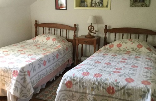 The first floor includes a modern eat-in kitchen (equipped for a serious cook) and sunroom overlooking the pond, living room with fireplace, dining room, powder room, two bedrooms with an adjoining full bathroom, and an enclosed porch which gets the morning sun. The second floor has three bedrooms and a full bathroom. Washer and dryer in basement, 5 window ACs, WiFi, televisions in living room and master bedroom, stereo system in living room with speakers also in sunroom and outdoors.