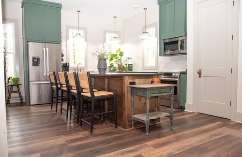 The home has large porches on the front and back along with plenty of windows for scenic views. Everything about the house is new yet feels like it's been nestled in the woods for decades.