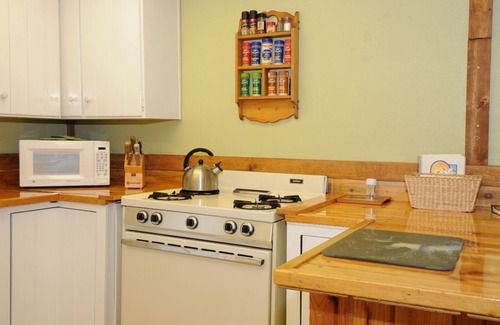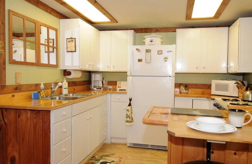 - Fully stocked with gas range, oven, microwave, blender, griddle, and crockpot.