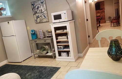 Our guest suite offers the ideal retreat for travelers visiting Asheville! Please note this is a basement apartment with a private entrance and we live in the home. Conveniently located just over a mile from I-26, our property feels like a secluded woodland escape. Surrounded by two acres of forest and frequented by deer in the evenings, it’s a peaceful, nature-filled experience—without sacrificing location.