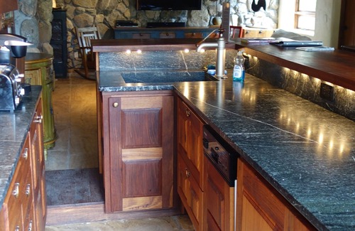 Incredible, Old-World styled guest house (2200 square foot) tucked into a wooded mountain side 5 miles North of Wilson. Our property is easily accessed from the town of Wilson, but secluded enough to enjoy privacy, tranquility and visits from local wildlife. Our home has distinctive architecture which features reclaimed wood beams, marble bathtub, custom stonework, imported sinks and marble floors. Ideal for couples seeking a quiet setting.