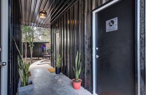 Tucked beneath a canopy of oak trees, the Black Crow Cabin offers a secluded and intimate escape with a peaceful wooded view. Designed with romance in mind, this cozy cabin features a rich, dark interior that creates a warm and moody ambiance—perfect for couples looking to slow down and reconnect.
