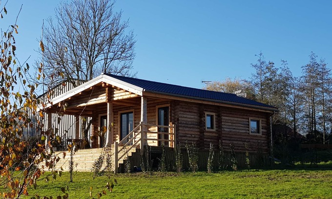 You will stay in a log chalet, a few meters from the horse farm. You can enjoy a spacious garden and views of the pony pasture.