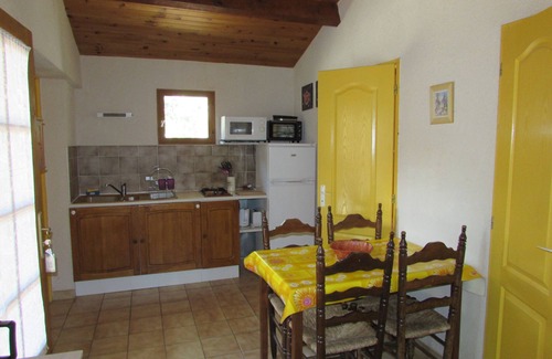 In the peace of apple trees, chalet 2/4 people with terrace and barbecue, shared swimming pool, parking, children's games, wifi access, ideally located for a couple or family vacation, 1 hour from the sea and Spain, at foot of Canigou, hiking on foot or in 4x4, fortified villages, Romanesque art, caves, hot spring, waterfalls, rivers.