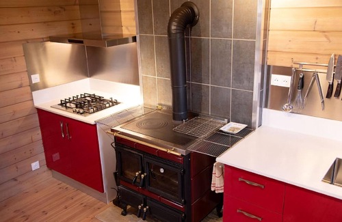 The chalet of approximately 50 m² is composed of a living room with a 160 cm convertible sofa, a dining area that can accommodate up to 8 people, a fully equipped kitchen around a wood stove, a gas cooker, a microwave oven and all the small household appliances useful for cooking.