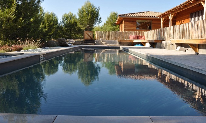 Wooden Houses Near Aix-en-Provence garden pool welcoming 12 to 16 people | House in Lambesc