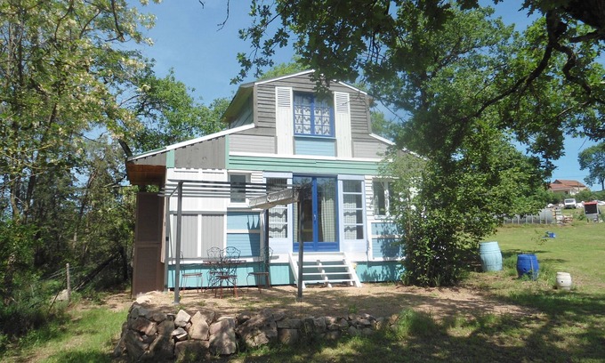 built-in kitchen, dining area, fridge, stove, filter coffee maker, 3 bedrooms including 2 doubles and 1 bunk bed 1 bathroom with shower and dry toilet, shared garden barbecue shared pool, plenty of storage space in the bedrooms and kitchen, linens provided towels sheets duvets and pillows, mountain views, Louisiana style lodge in nature at the edge of the woods