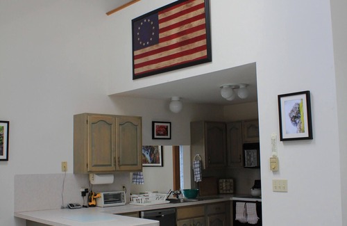 The bedrooms and bathroom are located on the first level with a sleep loft at the top of the stairs that has a futon. Each bedroom comes complete with Casper mattresses and down alternative duvet comforters. The Woodland Blue Chalet has electric heat throughout with individual thermostats in every room. A wood-burning fireplace, cable TV and DVD player available in the living room. WiFi available upon request.