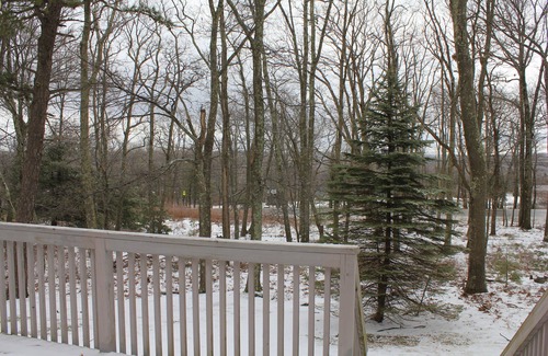 The Woodland Blue Chalet is located in a private, gated community with its own security and fire department. It is well-maintained. Come and enjoy the nearly 1 acre wooded property from the wrap-around deck of this beautiful chalet. Blueberries grow wild on the property and wildlife abounds, including deer, birds and chipmunks.