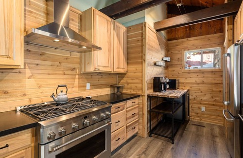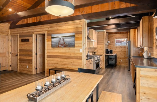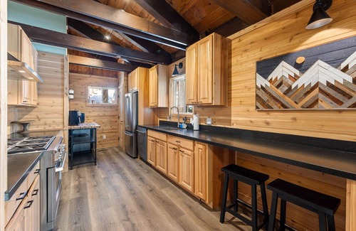 This cozy cabin is nestled in a serene natural setting and offers a sanctuary for those seeking solace amidst the beauty of the great outdoors. The open layout links the well-appointed kitchen equipped with stainless steel appliances and a coffee bar with the inviting family room. 2 miles away from Homewood Ski Resort. 1 mile away from Chambers Landing Bar and Restaurant.