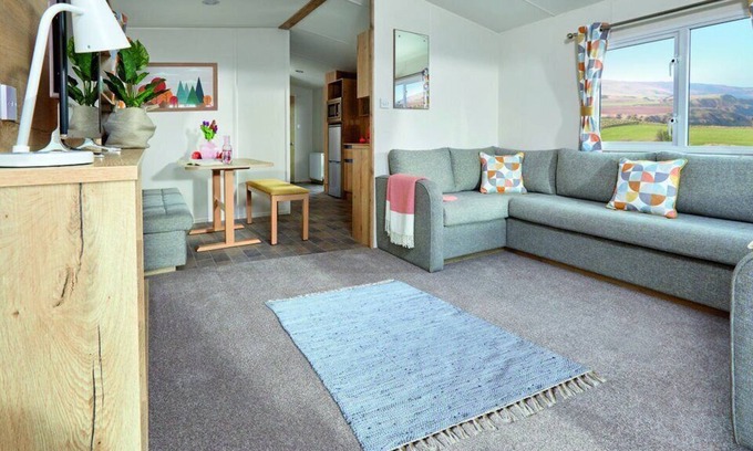 Comfortable 36ft by 12ft. Woodland Elm caravan that has one double and two twin bedroom, it is located on a quiet area on the Park. With Central Heating and Double Glazing throughout. These are Pet Friendly so your pampered pooch can come on holiday with you!